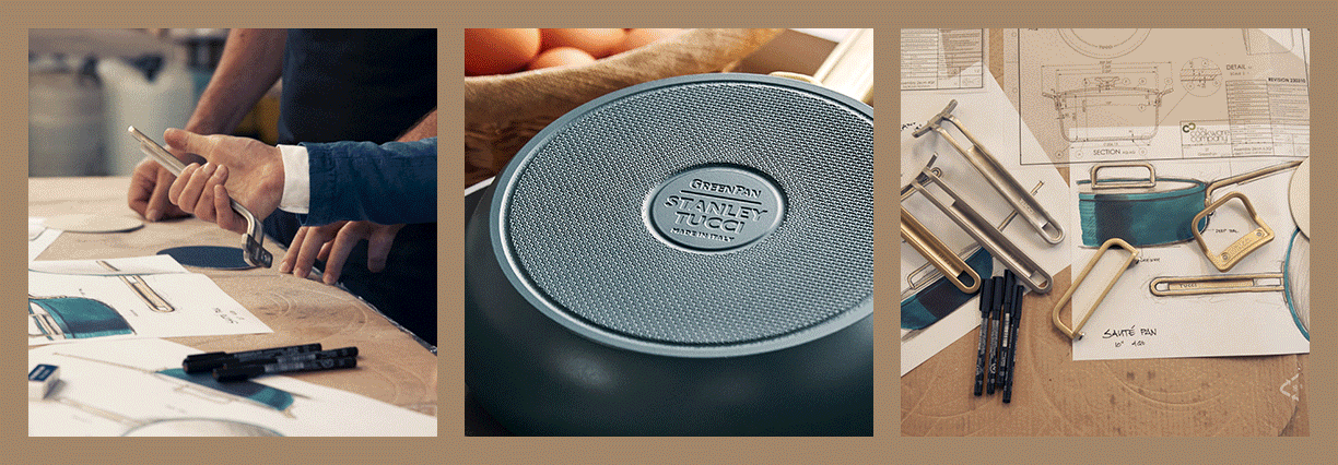 Stanley Tucci et le designer de GreenPan, Jan Hoekstra, ont travaillé en étroite collaboration pour créer cette collection, où chaque poêle est conçue sur mesure pour offrir performances et style.