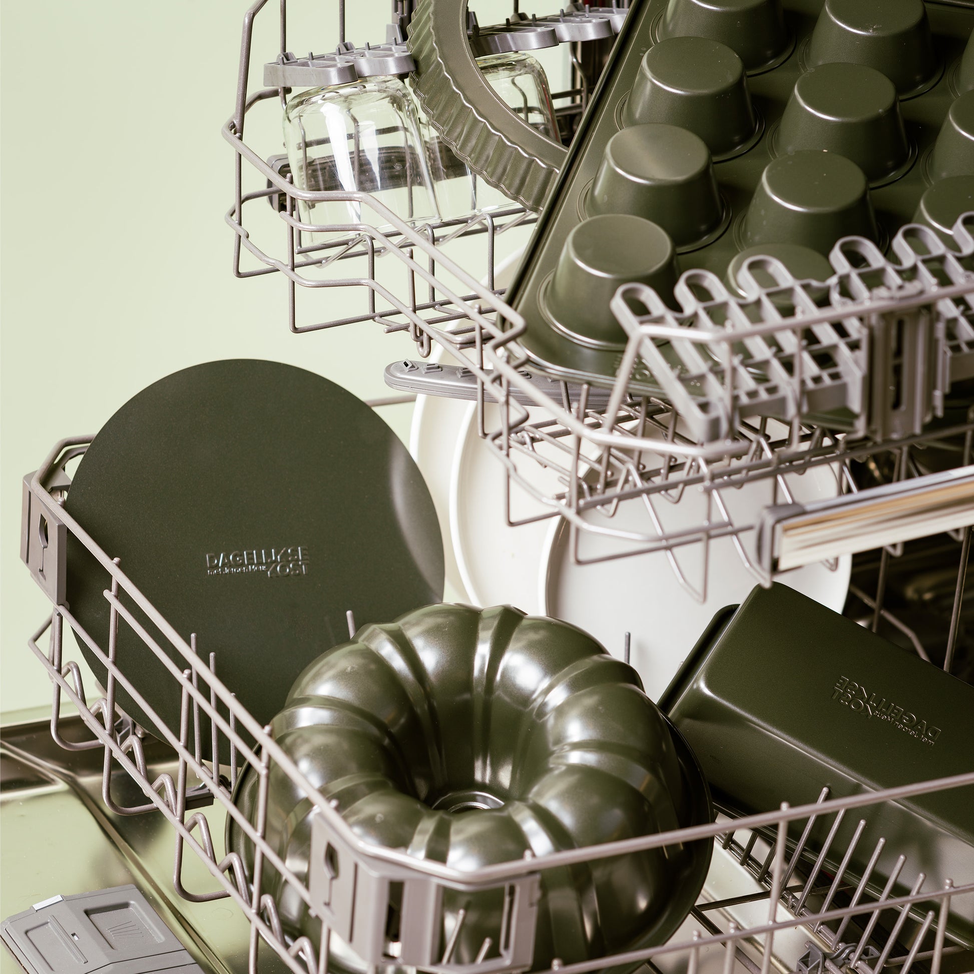 Cuisiner devient encore plus amusant avec les moules Dagelijkse kost ! Fabriqués en tôle d'acier aluminisée de haute qualité, ils sont particulièrement robustes et chauffent uniformément. Vous êtes ainsi assuré d'obtenir des résultats de cuisson parfaits. Grâce au revêtement antiadhésif intérieur sans PFAS, vos pâtisseries ne collent pas et conservent leur forme. Autre avantage : le nettoyage est un jeu d'enfant ! Leur élégant design vert olive est également un véritable atout. Beau, durable et facile !