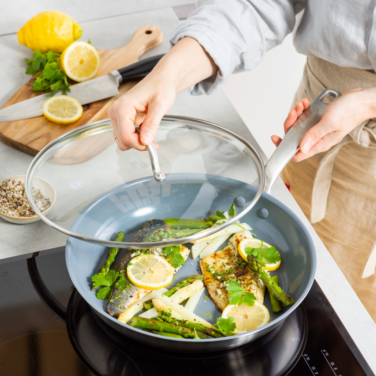 Cuisinez avec style grâce à notre collection Treviso. Confectionnée en acier inoxydable avec une finition encapsulée, elle offre un transfert de chaleur optimal et des performances exceptionnelles. Nos produits sont traités avec notre revêtement antiadhésif en céramique Thermolon™. Renforcé de diamants, il se nettoie sans effort et fournit des performances inégalées.