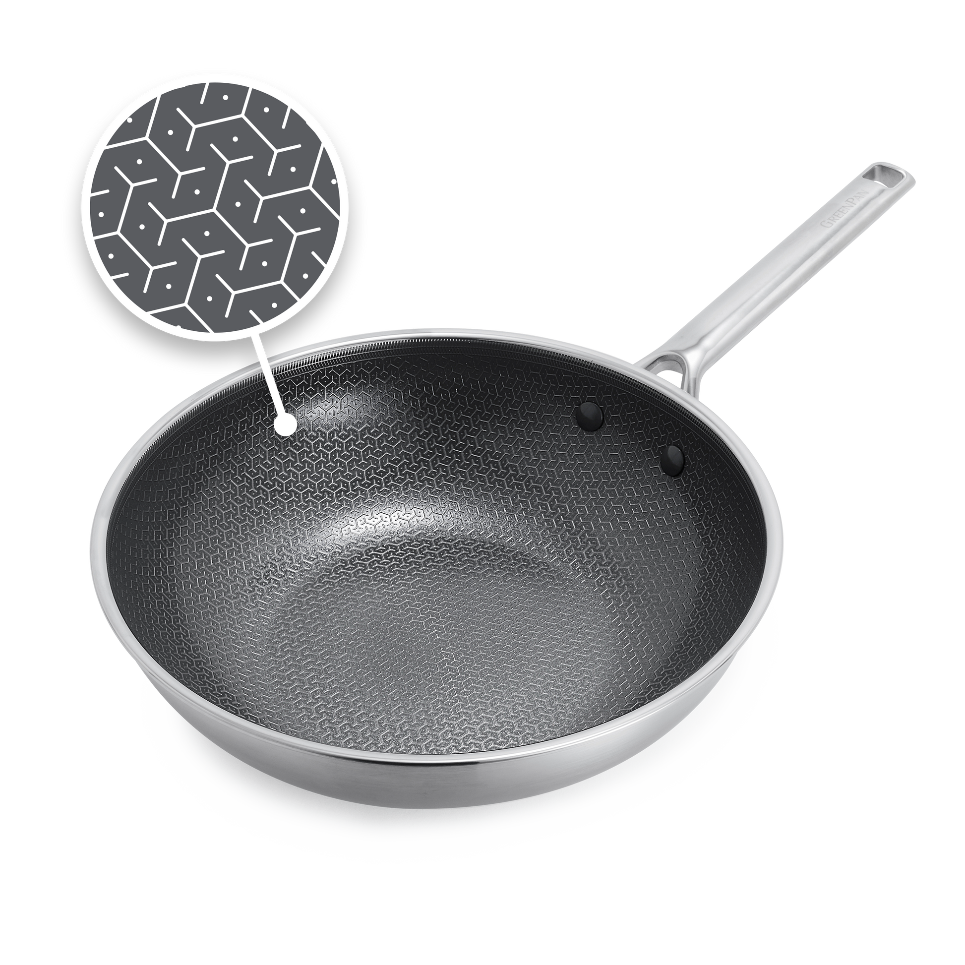 GreenPan APEX is een heruitvinding van hybride kookgerei. We combineren een krachtig geëtst patroon in roestvrij staal met onze kenmerkende PFAS-vrije antiaanbaklaag en voegen een boostlaag toe voor maximale prestaties. Ongelooflijke schroeiresultaten en moeiteloze loslating. Gemaakt van drielaags roestvrij staal is APEX vijf keer beter bestand tegen metalen keukengerei, ontworpen voor alle kookplaten en ovenbestendig tot 220 graden Celsius. Het is ook gemakkelijk schoon te maken. Ervaar de evolutie van hybride kookgerei met GreenPan.
