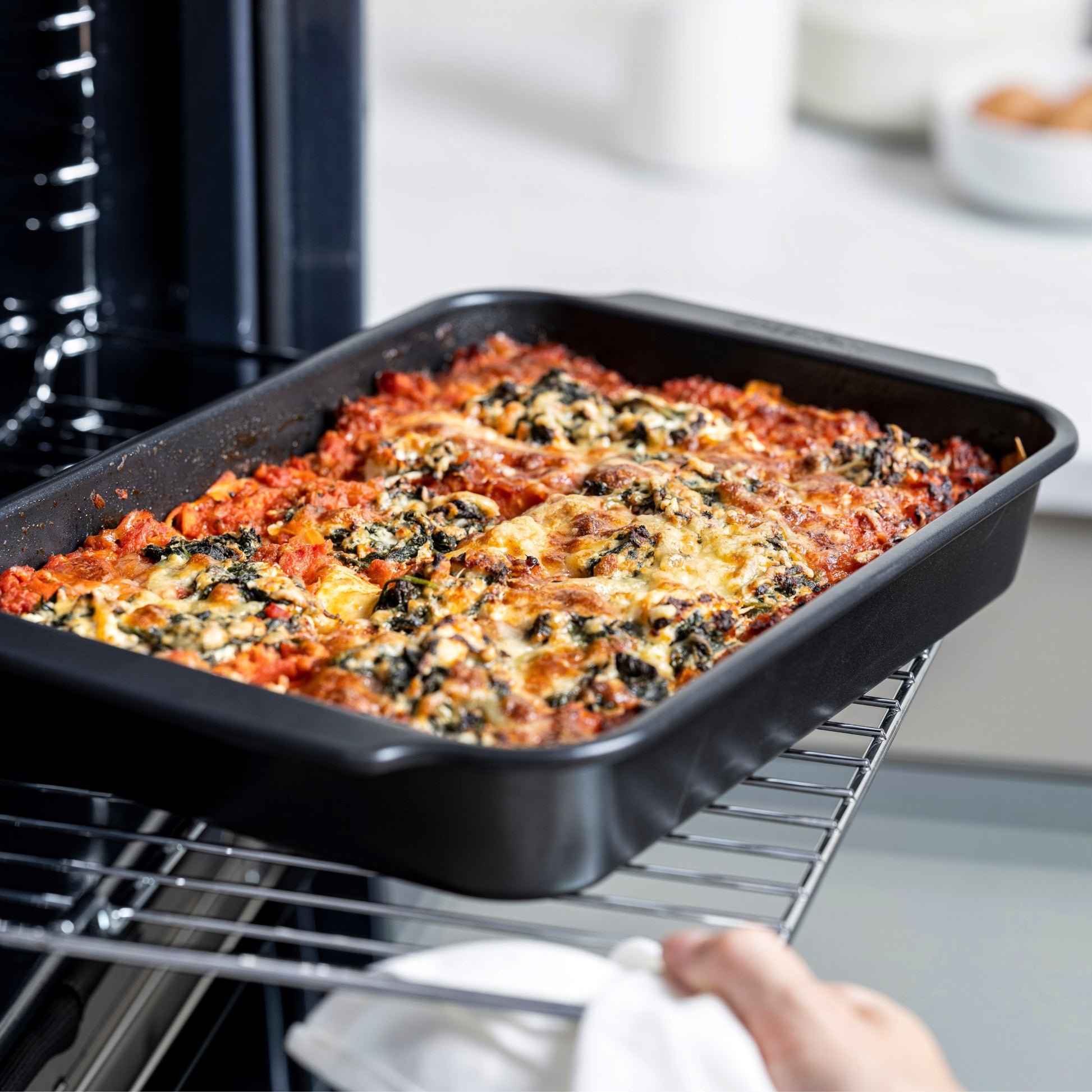 Met z’n nieuwe collectie bakvormen brengt GreenPan zijn expertise in PFAS-vrije antiaanbaklagen van het fornuis naar de oven! De collectie is gemaakt van stevig gealuminiseerd staal, waardoor ze oersterk is. Ze is kras- en corrosiebestendig, en trekt niet krom. De PFAS-vrije antiaanbaklaag zorgt ervoor dat voedsel makkelijk loskomt, zodat je je heerlijke creaties niet beschadigt als je ze uit de bakvorm haalt. De bakvormen schoonmaken, is kinderspel. Alle bakvormen – behalve de springvorm en muffinvorm – zijn bovendien vaatwasserbestendig. Extra makkelijk!