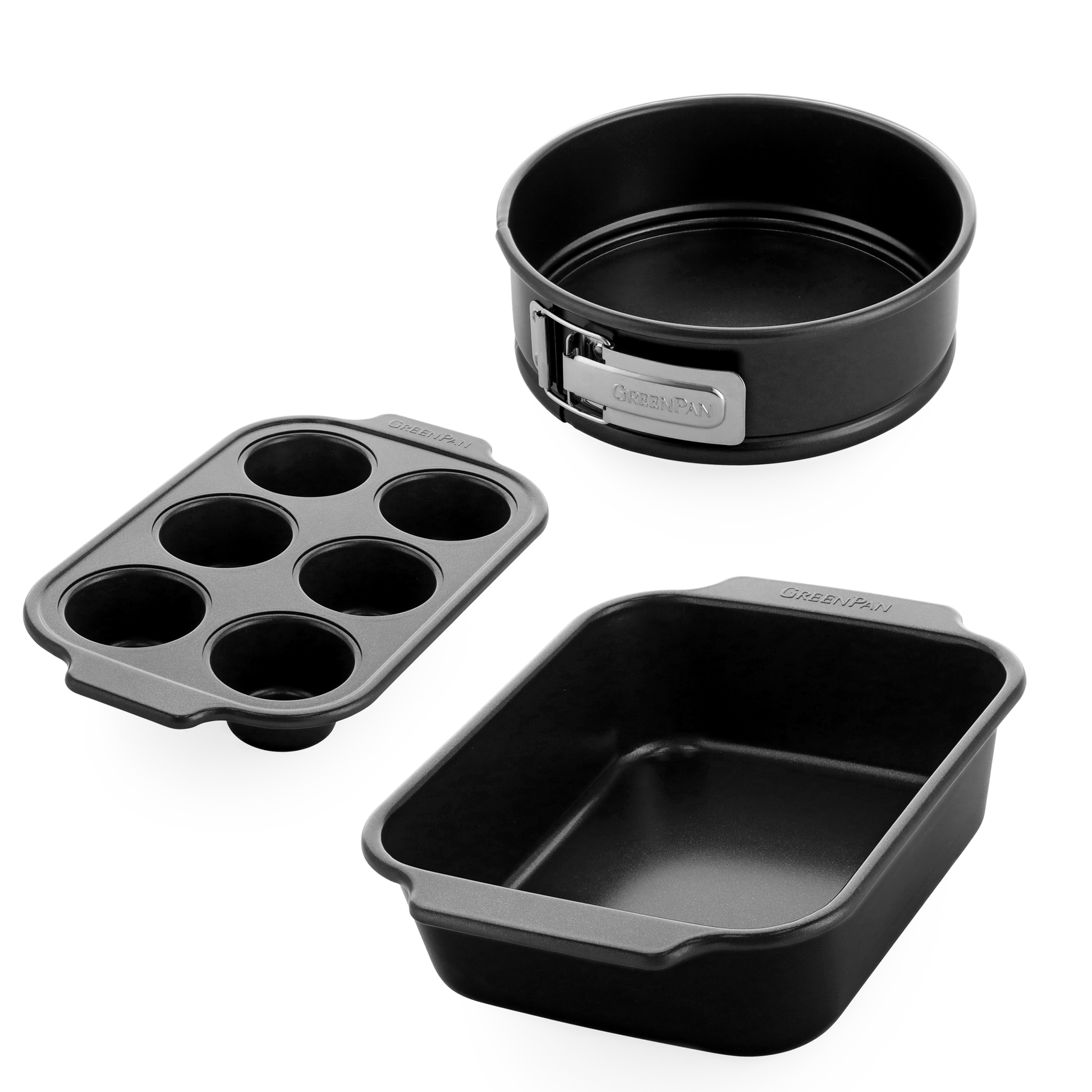 Met z’n nieuwe collectie bakvormen brengt GreenPan zijn expertise in PFAS-vrije antiaanbaklagen van het fornuis naar de oven! De collectie is gemaakt van stevig gealuminiseerd staal, waardoor ze oersterk is. Ze is kras- en corrosiebestendig, en trekt niet krom. De PFAS-vrije antiaanbaklaag zorgt ervoor dat voedsel makkelijk loskomt, zodat je je heerlijke creaties niet beschadigt als je ze uit de bakvorm haalt. De bakvormen schoonmaken, is kinderspel. Alle bakvormen – behalve de springvorm en muffinvorm – zijn bovendien vaatwasserbestendig. Extra makkelijk!