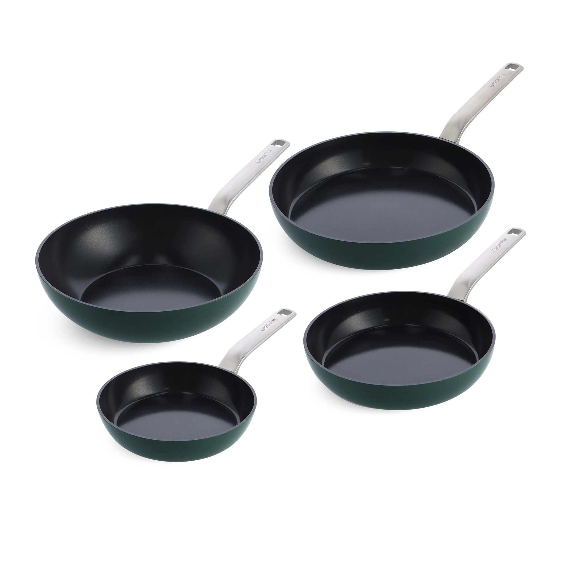 Deze collectie in elegant Pine Green, heeft een slim design met een hart voor de planeet. De items bevatten gerecycleerd aluminium en hebben een afneembaar roestvrijstalen handvat. Daardoor kunnen ze makkelijk gerecycleerd worden. Er is ook minder CO2-uitstoot bij het transporteren van deze producten dankzij een kleinere verpakking. Goed voor de planeet en bovendien ziet deze collectie er fantastisch uit! Bij levering is de handgreep nog niet bevestigd op de pan. Dat doe je eenvoudig zelf aan de hand van ons handig stappenplan.