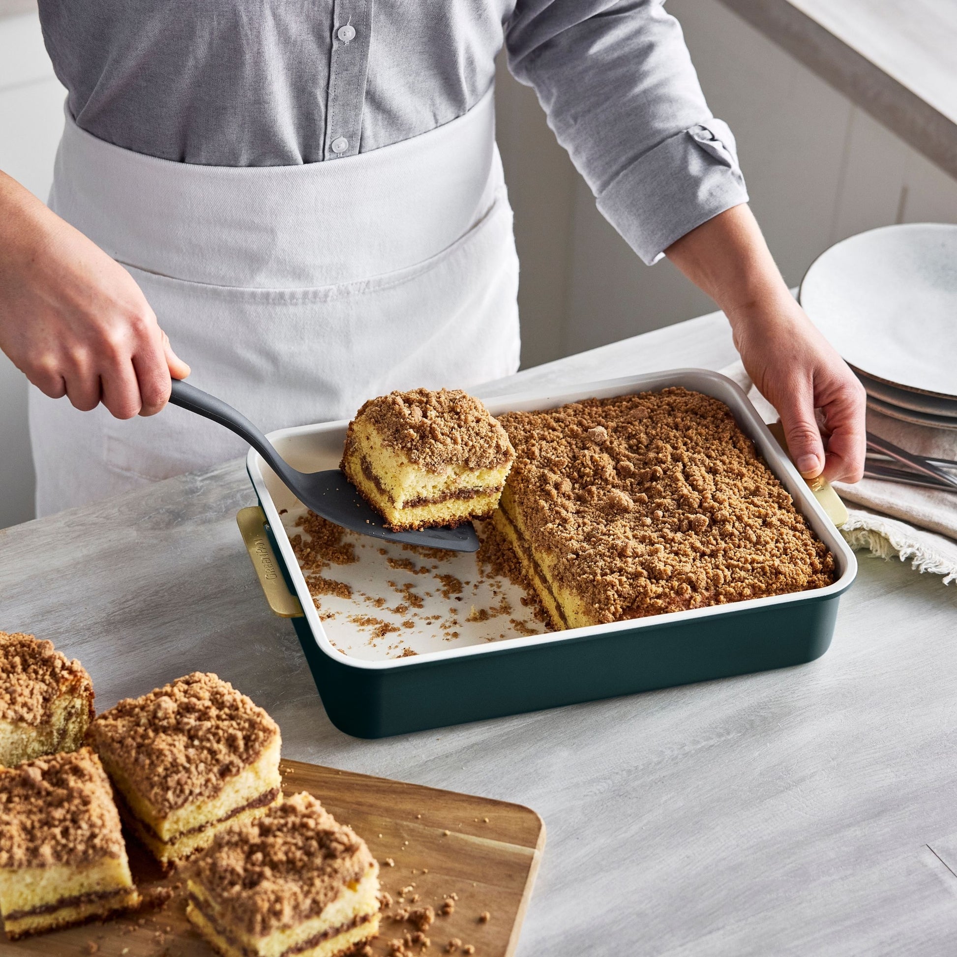 GreenPan Padova Reserve Bakvormen combineren premium prestaties met een prachtig ontwerp. Ze zijn gemaakt van stevig gealuminiseerd staal, wat zorgt voor een gelijkmatige warmteverdeling en een uitstekende duurzaamheid.