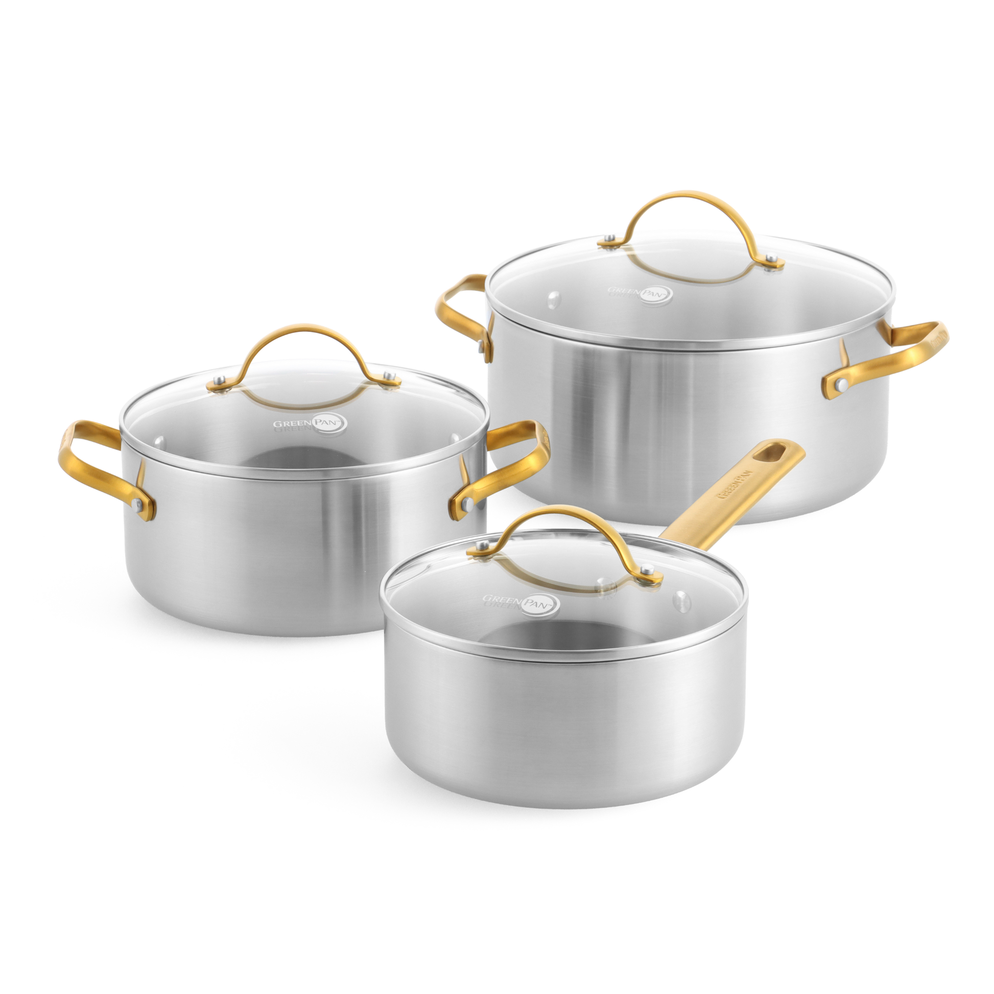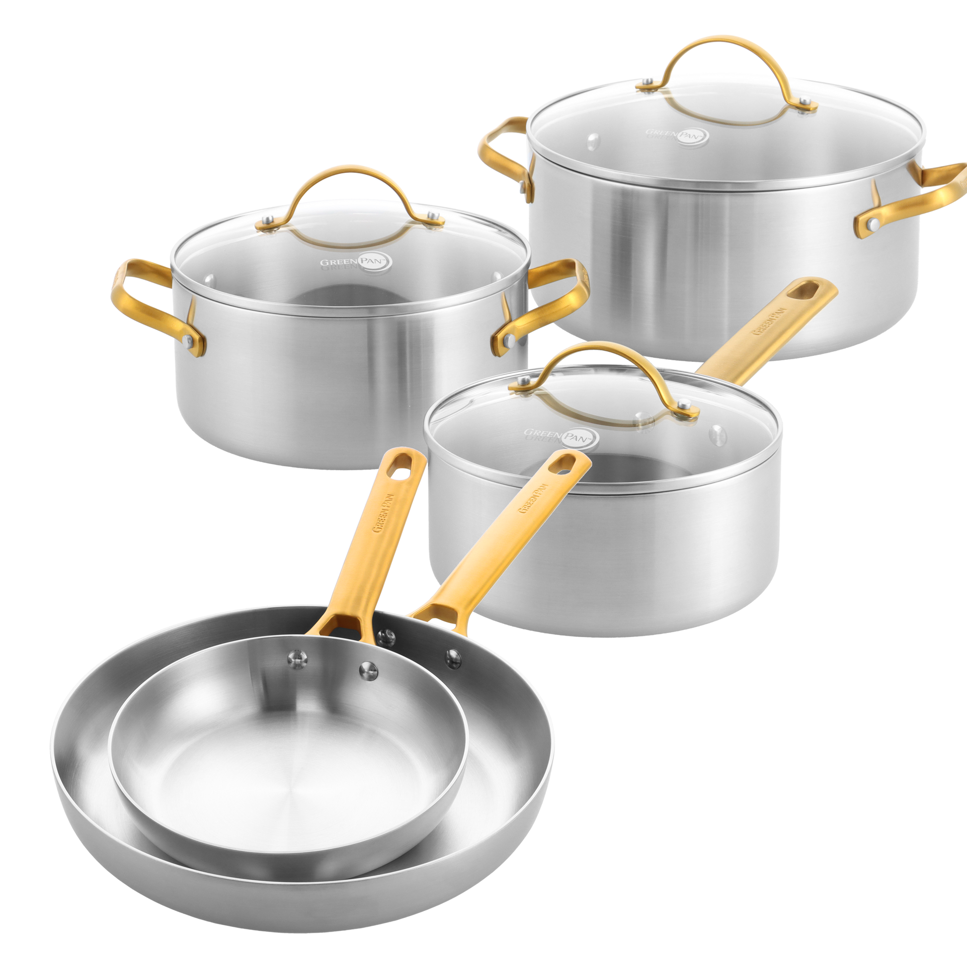 Hoogwaardig 3-laags roestvrij staal (55% gerecycled roestvrij staal) zorgt voor een gelijkmatige warmteverdeling, nauwkeurige controle, perfect bruinen, schroeien, braden, blussen en nog veel meer.