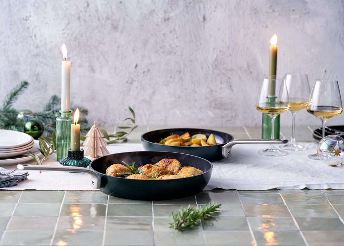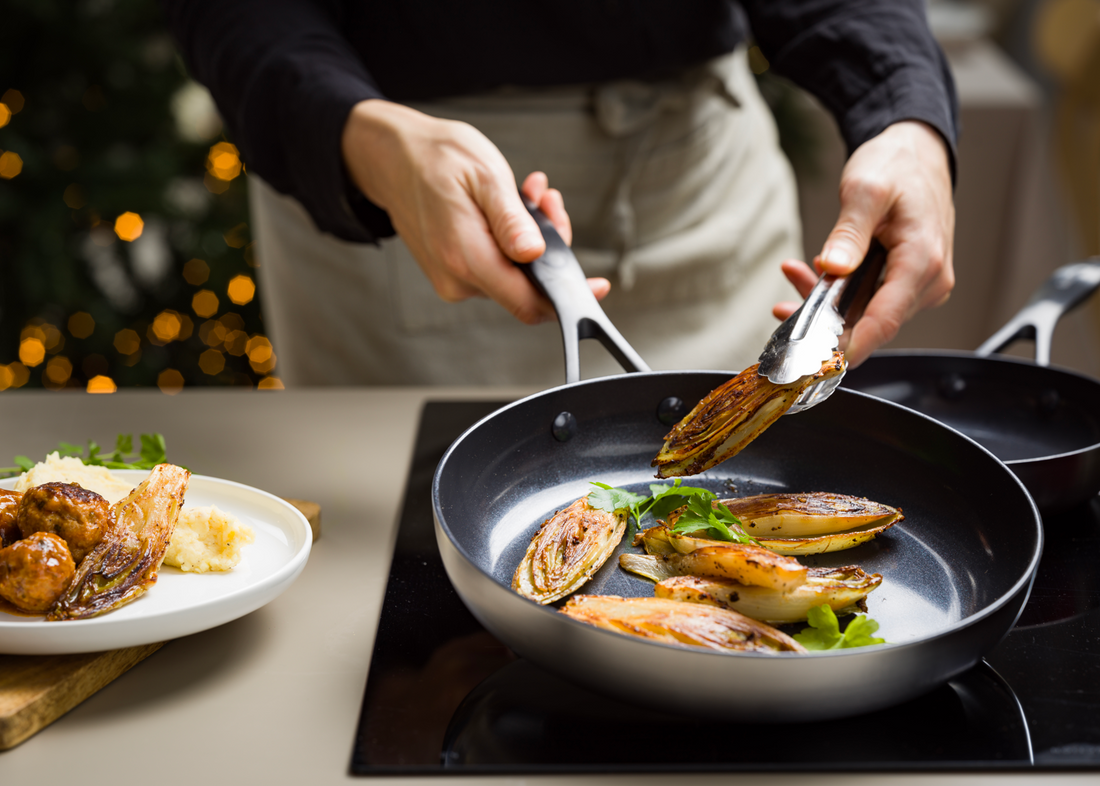 Deze 14-delige pannenset van hoogwaardig roestvrij staal is onmisbaar voor je keuken. Zijn design is 100% tijdloos en een toonbeeld van krachtige eenvoud. Het zilverkleurige oppervlak straalt elegantie uit, terwijl de matzwarte handgrepen zorgen voor een stoere afwerking. De ideale pannenset voor wie houdt van oerdegelijke pannen die een leven lang meegaan.