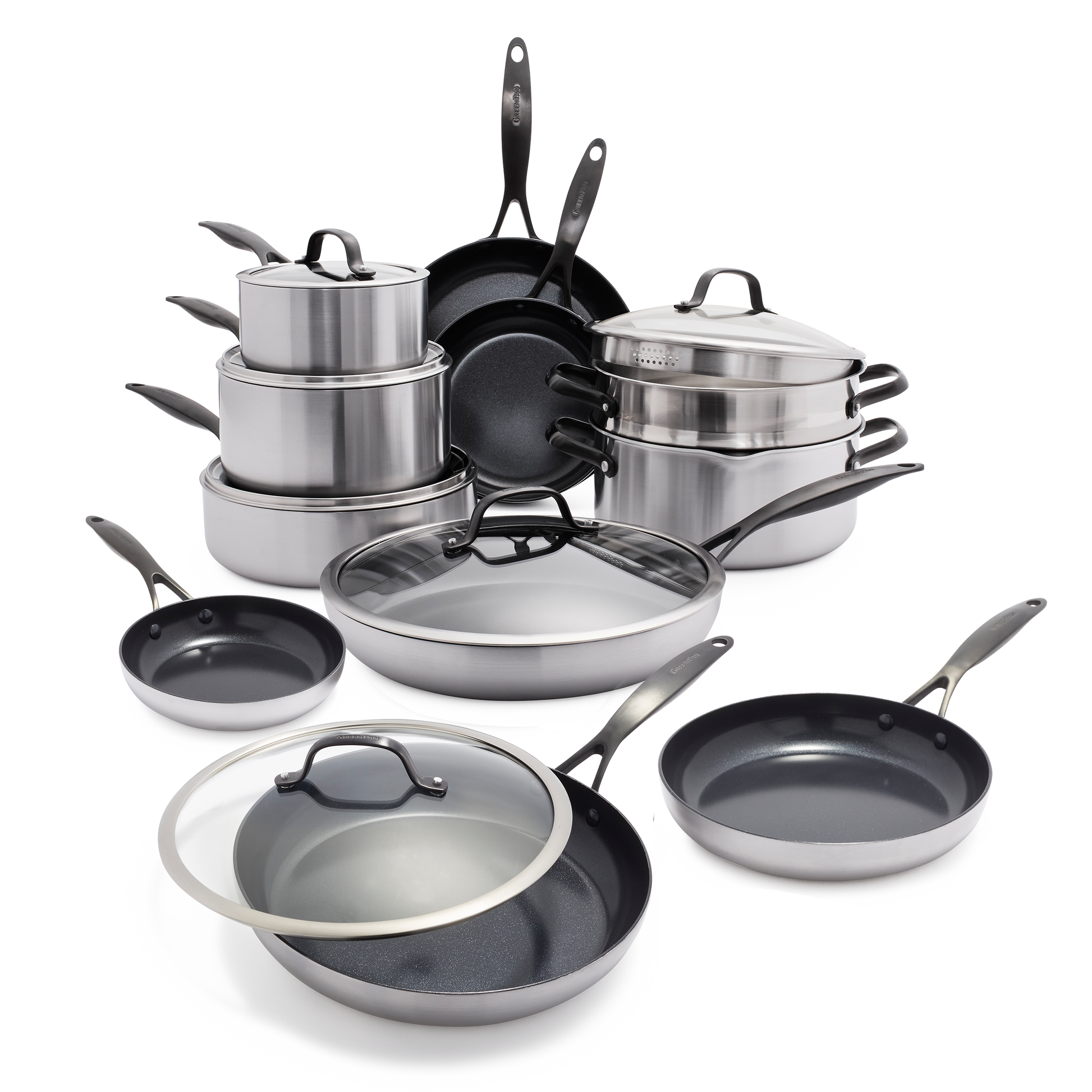 Deze collectie is een topper in je keuken! Het drielaags materiaal zorgt voor een optimale warmtegeleiding. Het roestvrij staal werd behandeld met onze Evershine™ technologie, waardoor je pannen miander snel verkleuren en langer mooi blijven. Extra eyecatcher: de matzwarte roestvrijstalen handgrepen.